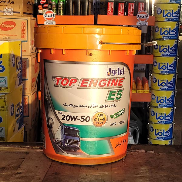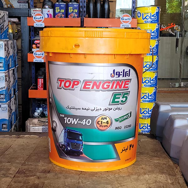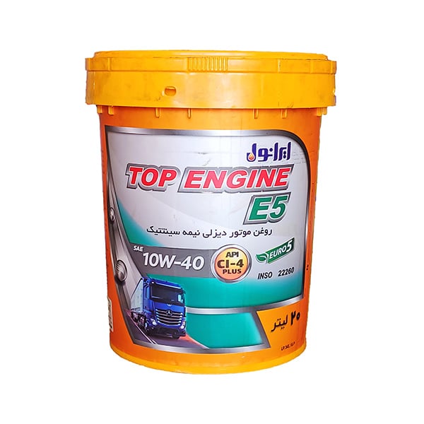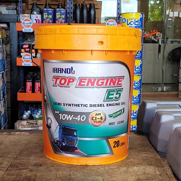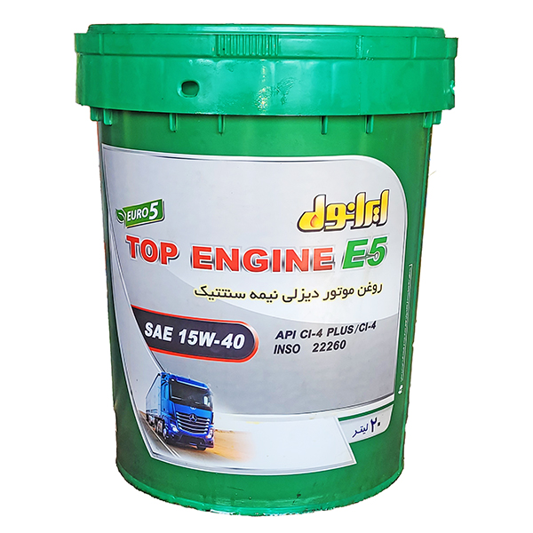 ایرانول TOP ENGINE E5 روغن موتور دیزلی چند درجه‌ای با پایه نیمه‌سنتتیک و افزودنی‌های مرغوب است که برای موتورهای دیزلی سنگین و استاندارد آلایندگی EURO 5 و پایین‌تر طراحی شده و قابلیت کارکرد در تمام فصول و شرایط آب و هوایی ایران را دارد، با تمرکز بر بهبود کارایی در موتورهای دارای فناوری‌های EGR و SCR، مقاومت در برابر اکسیداسیون و حرارت، پاک‌کنندگی دوده و کاهش ساییدگی قطعات.
